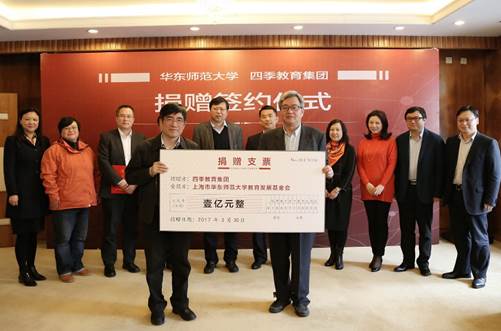 我院1984届校友田培庆代表四季教育(集团)向学校捐赠1亿元人民币
