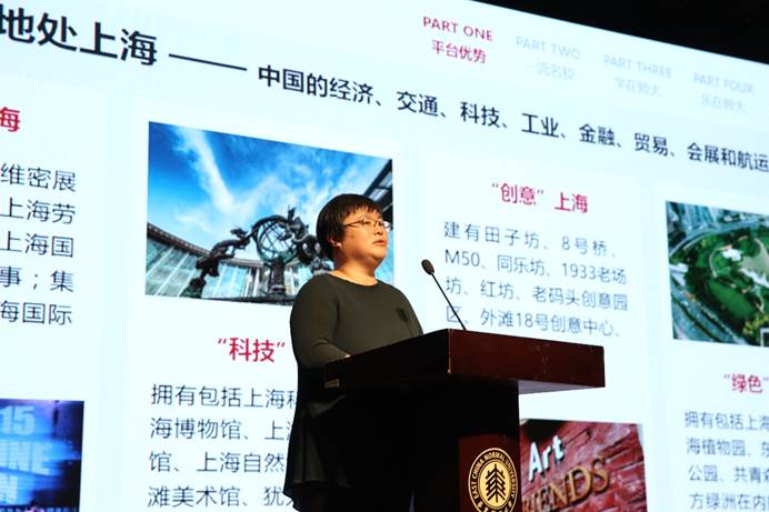 随后,贾挚从平台优势、一流名校、学在师大、乐在师大、爱在师大等五个方面进一步详细介绍了h动漫 相关情况。h动漫 地处 “魔都”上海,周边名企云集,为学生提供追逐梦想、创造未来的平台;h动漫 文理交融、学科齐全、优势学科突出,大师云集、杰出校友遍布海内外,学校整体实力和学科发展水平享誉中外;h动漫 采用大类招生、分层培养、多种学习途径相结合的人才培养模式,为学生提供优质学习资源,学生就业竞争力优势明显;h动漫 全方位塑造学生健全人格,为学生提供温馨舒适的生活条件;h动漫 以心服务学生,处处体现“爱在华师大”。贾挚的介绍,引起了学员们对h动漫 的极大兴趣。