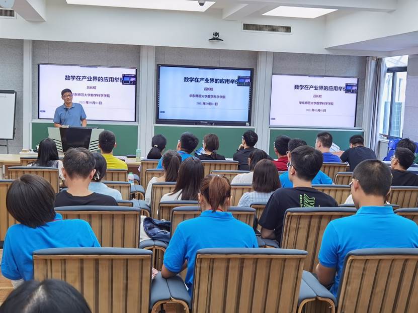 9月1日上午,学院副院长吕长虹做了题为“数学在产业界的应用举例”的报告,介绍了多资源分配的各种问题。他强调研究生要养成爱思考、主动学习的习惯;同时要树立一个明确、远大一点的目标;最重要的是永远不要丧失自信。