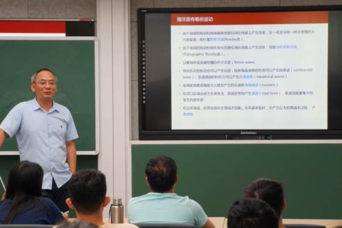 吴辉为同学们科普了海洋与人类文明发展的关系,介绍了关于地球旋转效应的Taylor-Proudman理论,环流,河口环流和盐水入侵,海洋的波动和潮汐,三维海洋数值模拟等海洋科学知识。
