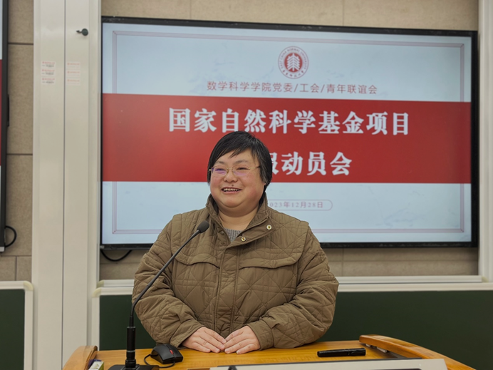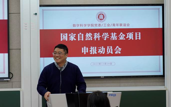 2023年12月28日下午,学院工会和青年联谊会联合举办的2024年国家自然科学基金项目申报动员会在数学楼401报告厅进行。上海大学数学系主任、国家自然科学基金委数理学部数学科学处原流动项目主任张红莲做经验分享,h动漫 科技处处长杨海波、国家自然科学基金项目主管陈美现场指导。学院党委书记贾挚、青年联谊会会长黄侠及部分教师参加会议。会议由副院长罗栗主持。