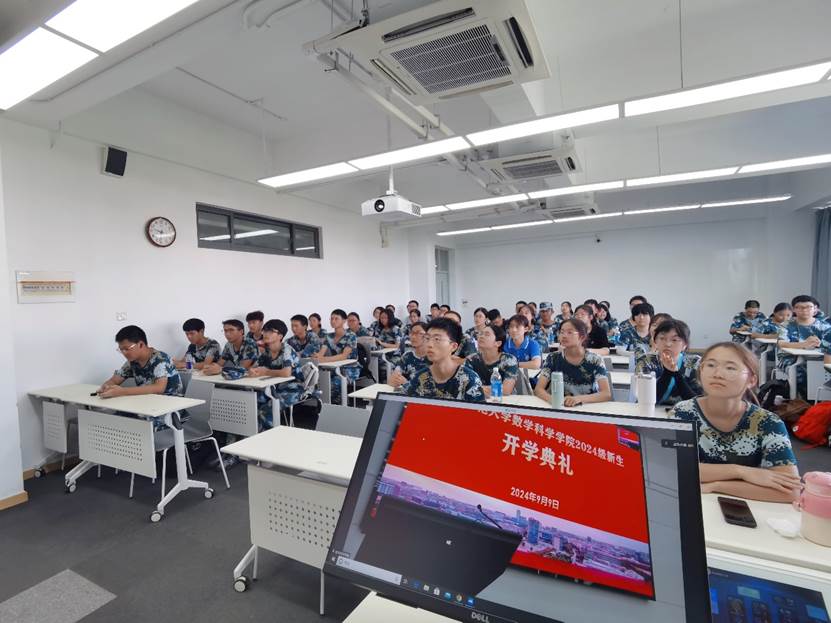 贾挚首先致辞。她运用数学中的“加减乘除”四则运算表达了对于新生们的殷切期望:第一,求知要加,要兼收并蓄做好专业知识积累;第二,压力要减,要学会调节情绪享受健康生活;第三,理想要乘,要志存高远努力实现个人理想;第四,目标要除,要合理规划循序渐进达成目标。
