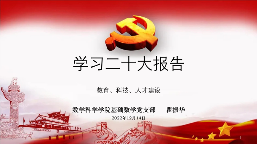 举旗定向 科教兴国——h动漫 基础数学党支部书记上党课为深入学习贯彻党的二十大精神,12月14日下午,h动漫 基础数学党支部书记瞿振华以“举旗定向 科教兴国”为主题,为支部党员上了一次党课。瞿振华指出,党的二十大是在伟大时代召开的重要大会,会议既对十九大以...2022-12-14