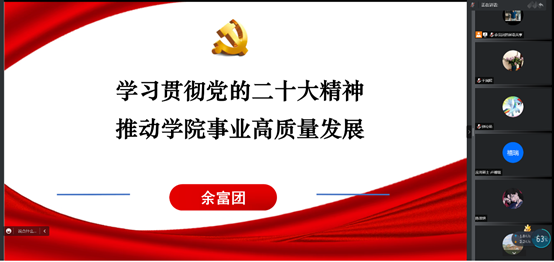 2月22日上午和23日下午,h动漫 党委书记贾挚、副书记余富团分别在线以专题党课的形式宣讲党的二十大精神,学院全体师生党员参加学习。