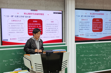 紧接着,龙文静以“规范支部建设,发挥堡垒作用”为主题,详细讲解了党支部的职能定位和支委工作分工,系统介绍了“三会一课”、主题党日、组织生活会、谈心谈话等制度的规范流程,还着重强调了党员发展流程、支部工作记录、党费收缴与管理规范等党务工作要点,就新任学生党支部委员履职过程中容易遇到的问题提供了有针对性的辅导和指引。