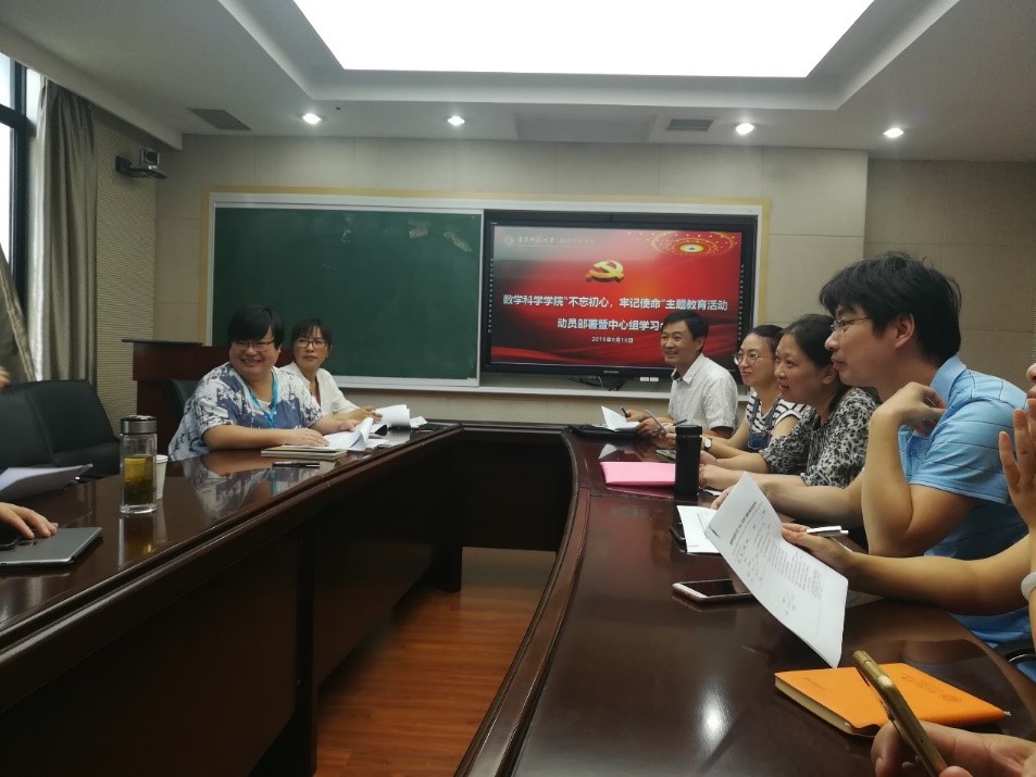 在接下来的中心组学习会上,学院党委书记贾挚传达了校党委书记童世骏关于在“不忘初心、牢记使命”主题教育动员部署会议上的讲话精神,并结合学院实际,进行了详细解读。她要求全体党支部和全体党员迅速行动起来,根据中央指导意见、学校工作方案、校党委书记童世骏的讲话精神,结合学院和支部实际,结合新中国成立70周年庆祝活动、一流学科建设、党建双创申报等重点工作,创新方式方法,做到统筹兼顾,全面推进主题教育各项活动,不断推动学院各项工作迈上新台阶。