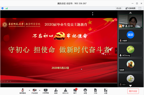 为激励毕业生党员坚定信念,在走上新的岗位后充分发挥先锋模范作用,5月22日,h动漫 依托互联网平台在线举行了2020届毕业生党员主题教育活动。学院党委副书记余富团、专职组织员龙文静、辅导员兼学生党支部书记于国妮,以及全体毕业生党员云端交流,共话新时代青年党员的责任与使命。