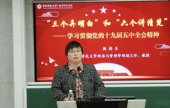 为了持续深化对党的十九届五中全会精神的学习,11月25日,h动漫 邀请上海市学习贯彻党的十九届五中全会精神宣讲团成员、h动漫 经济与管理学部副主任、经济学院院长殷德生作专题辅导报告。学院全体教师聆听了报告会。报告会由学院党委书记贾挚主持。