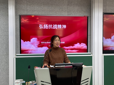 参观之后4月22日中午,学生博士生党支部书记、辅导员于国妮再次以“弘扬抗战精神”为题给学生党员们上了一次微党课,她回顾和讲述了抗战期间六个感人的英雄故事:杨惠敏送国旗、小萝卜头、杨靖宇将军牺牲、琼崖纵队坚持23年抗战、八女投江、狼牙山五壮士等,让党员们更加深刻地体会了抗战精神的内涵,加深了他们对中国共产党在抗战中所发挥的中流砥柱作用的认识。