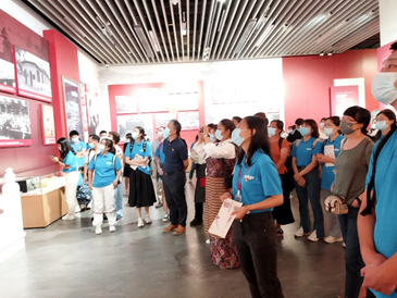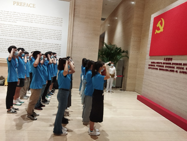 中共一大会址纪念馆位于上海市兴业路76号,是一街砖木结构一底一楼旧式石库门住宅建筑。展览馆内陈列了许多珍贵的历史文物,收集了很多革命战争时期的战况,展示了中共革命前辈的照片。师生们在讲解员的引导下,先后参观了“历史选择、伟大开端”、“前赴后继、救亡图存”、“民众觉醒、主义抉择”、“早期组织、星火初然”、“开天辟地、日出东方”、“砥砺前行、光辉历程”等专题展厅,系统地回顾了中国共产党从孕育、诞生直到新时代铸就新辉煌的历史进程,身临其境地感受到了中国共产党创建初期的历史面貌,更加激励了党员同志们砥砺前行、开拓奋进的激情斗志。
