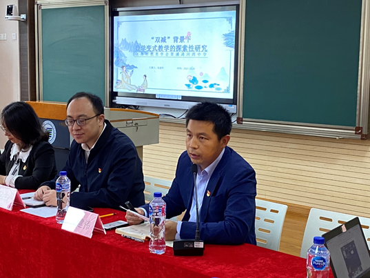 随后,清河湾中学张建伟老师以《“双减”背景下,数学变式教学的探索性研究》为题,分享了他在数学教学中实践,通过变式教学的方法,让学生学透数学,学好数学,学活数学。