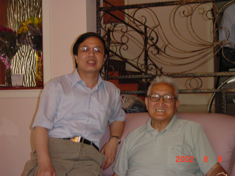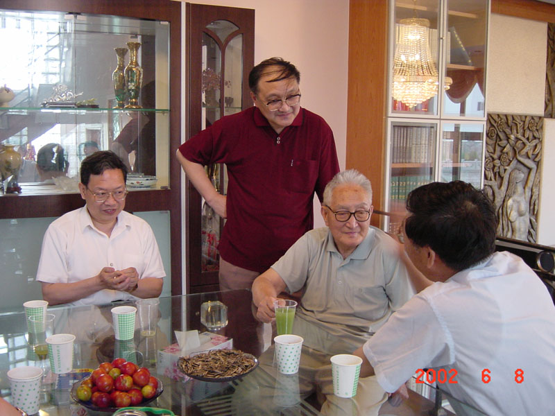 左图:2002年的全国第八届代数学学术会议(苏州)期间,曹先生携王建磐、林磊和h动漫 的研究生合影 右图:在王建磐家的聚会上,曹先生与陈志杰、刘昌堃、叶家琛在交谈