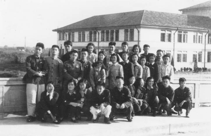 1955年暑期,数学系自己培养的首届四年制本科生毕业了,他们在数学馆门前摄影留念。同时毕业的还有两年制的数学分析研究生班和两年制的数学专科班。